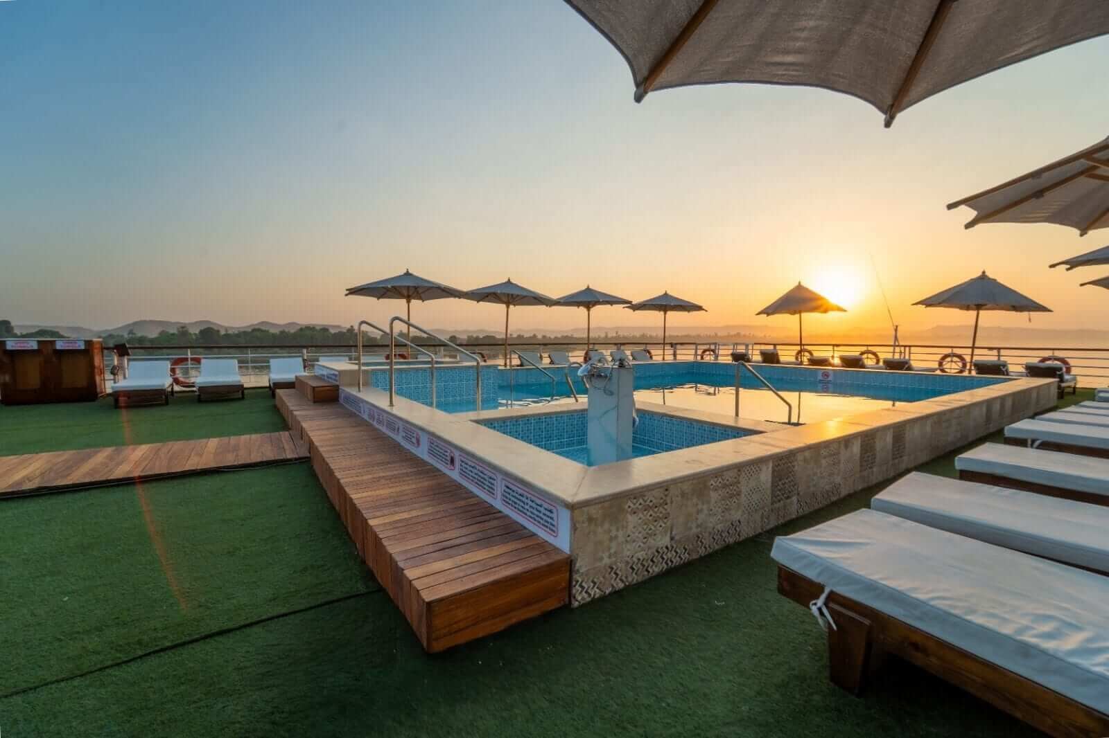 The ship is celebrated for its exceptional amenities, including the largest sundeck on the Egyptian Nile, the most spacious swimming pool, and a Jacuzzi. Recognized for its excellence in service and quality, City and Sea Adonis has earned a five-star deluxe rating from the Egyptian Tourism Authority, highlighting its status as one of the Nile’s premier luxury cruise vessels.